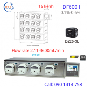 ►Bộ bơm định lượng đa kênh DF600Plus IV-32 channels tốc độ lưu lượng 6.9 đến 12000 mL/min.