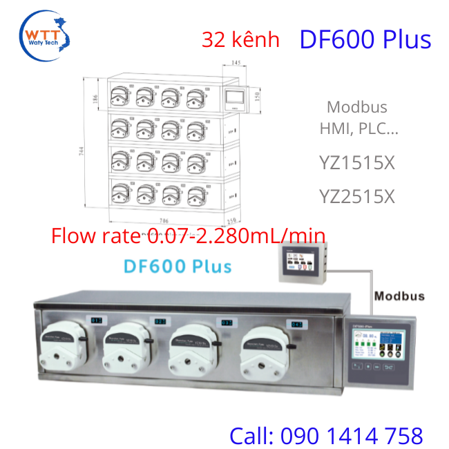 ►Bộ bơm định lượng đa kênh DF600 Plus tốc độ lưu lượng 0.07 đến 2280 mL/min.
